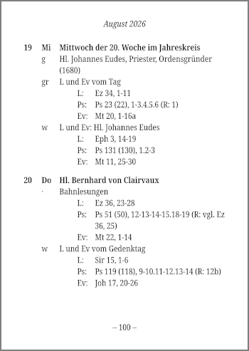 Von dieser Seite können liturgische Kalender auch im Stil der Direktorien erzeugt werden, wie sie typischerweise von Bistümern jährlich als Büchlein im Format DIN A6 über die Seelsorgestellen verteilt werden. Die Seite Teilkirchen enthält dafür die Download-Links.